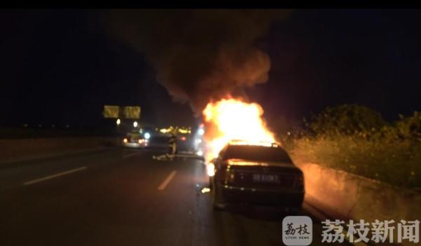 今天凌晨5点,无锡市梁溪区江海高架通江大道往无锡出口方向发生一起事故,一辆小轿车在此处发生自燃。