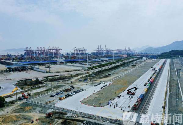据悉,铁路穿山港站站内先期设计4条到发线和2条装卸线,配备4台轨道式龙门吊、1台调车机车,可满足海铁联运集装箱整列取送和装卸,近、远期设计海铁联运作业能力分别为60万标准箱和80万标准箱。
