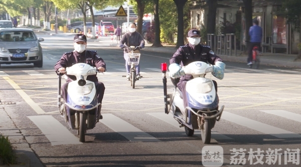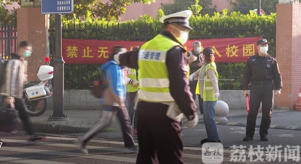 苏州市姑苏交警大队第九中队中队长马金龙,他是苏州市立达中学防疫专班的交通安全员,自专班成立之后,他根据学校的实际情况,作了防疫预案。在学生上下学的时候,每天安排4名交警维护交通秩序及学生上下车的安全。“我们主要在吴中西路和长吴路口设置了警力,门口安排了三名警力,以确保学生上学、放学的安全,同时也保障老师出行的方便。同时还设立了机动巡逻岗,紧紧围绕立达中学周边,如果一旦哪个路口发生拥堵了,能进行及时的管控。在这里也呼吁家长尽量的绿色低碳出行,根据学生放学时间来制定自己接送学生的方案。”