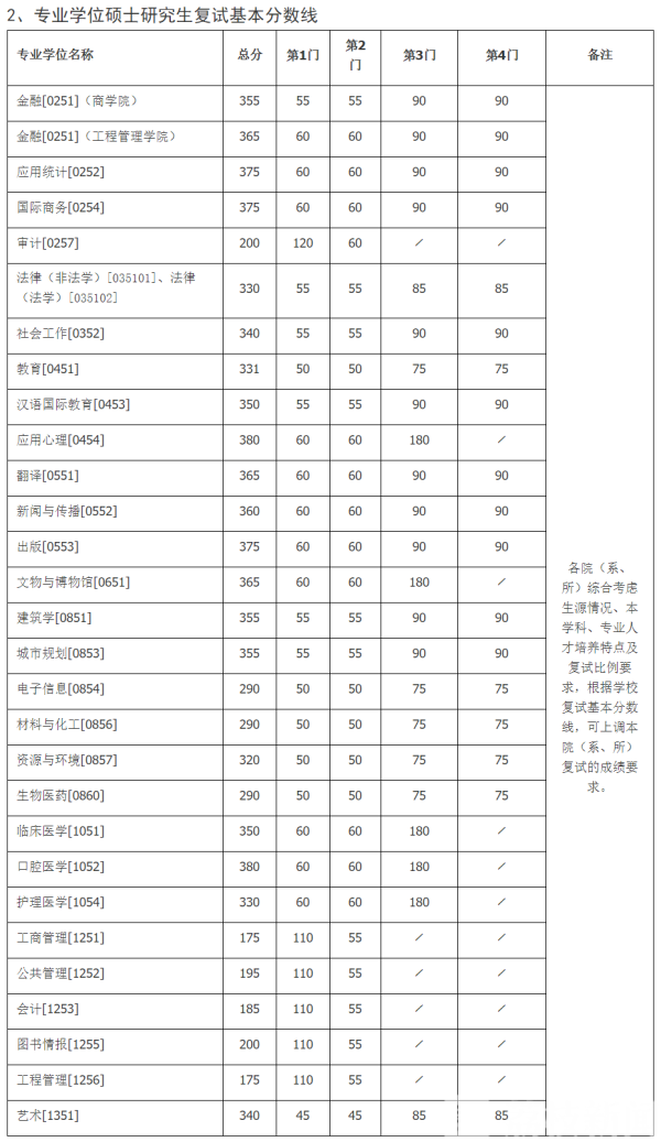 南京大学今天(4月15日)下午公布了2020年硕士研究生复试基本分数线。学术学位硕士研究生复试基本分数线最高的学科是经济学,为380分。专业学位硕士研究生复试基本分数线最高的学科是应用心理以及口腔医学,为380分。各院(系、所)综合考虑生源情况、本学科、专业人才培养特点及复试比例要求,根据学校复试基本分数线,可上调本院(系、所)复试的成绩要求。有关复试录取工作安排将另行通知。