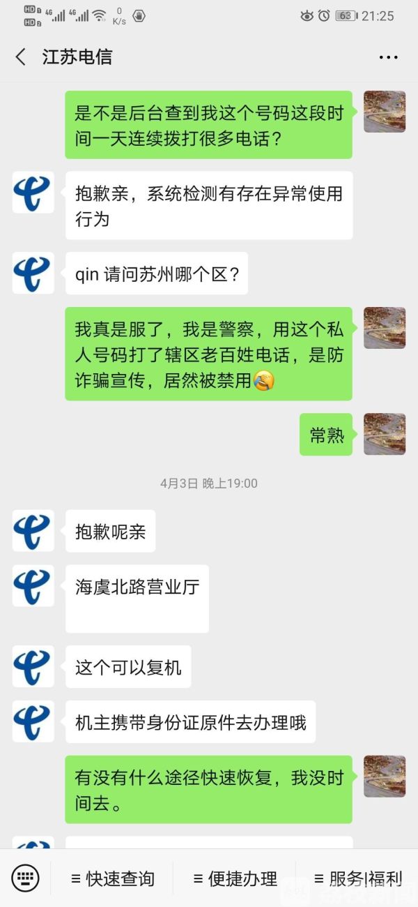 近日,苏州常熟任阳派出所在工作中遇到了一件让人啼笑皆非的事。派出所所长胡耀通过私人电话进行防骗宣传过程中,发现自己的手机突然无法正常通话,于是他立即通过微信联系电信部门咨询,却被告知,手机通话异常涉嫌诈骗,已被禁用!
