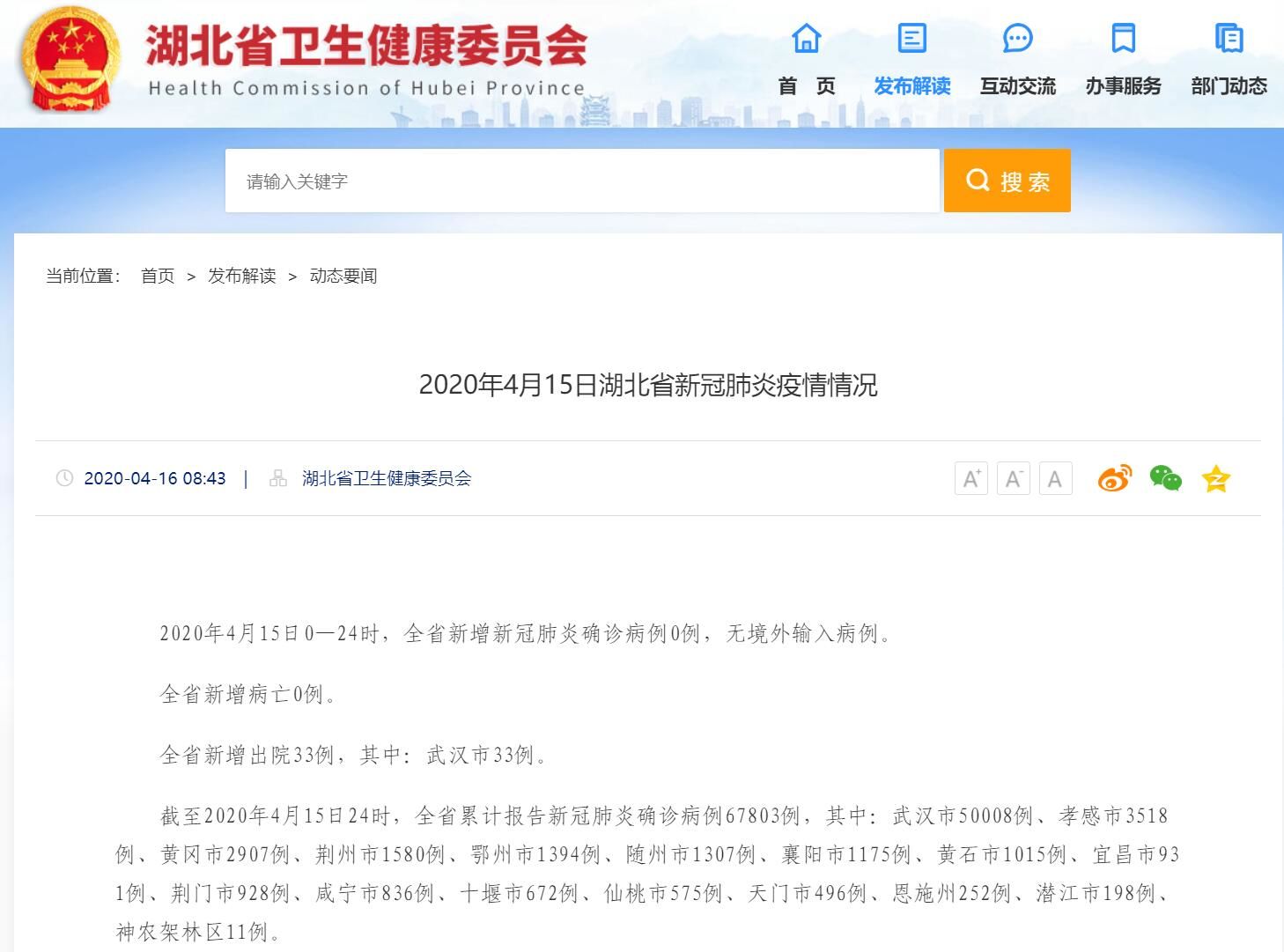 湖北卫健委官网截图