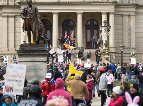 针对此次的抗议活动,密歇根州州长惠特默指出,很多抗议者都把自己和其他人置于感染新冠病毒的危险之中。“看到人们聚集在一起却不戴口罩,我真的很失望。”惠特默上周将该州的“居家令”延长至4月30日,并增加了更多限制,包括禁止大多数居民前往其他住所等等。根据约翰斯·霍普金斯大学的数据,密歇根州有超过2.8万例新冠肺炎病例,在全美排名第四,死亡人数排在第三,超过1900人。