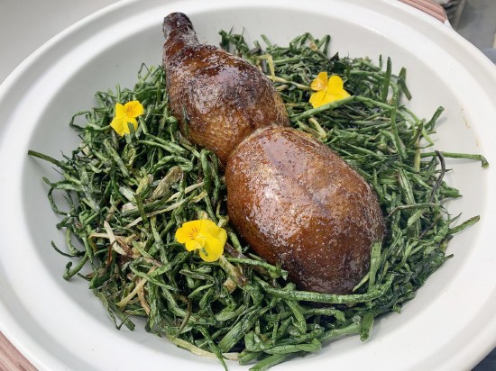 清蒸刀鱼、红烧河豚、清蒸活鲥鱼……作为一家出身淮扬菜“世家”的融合菜餐厅,这里的养殖江鲜是春天的特色菜的一部分,还配以川菜、粤菜等。