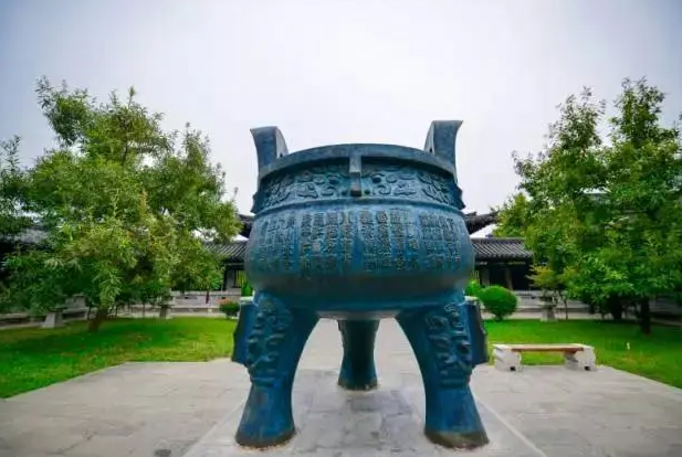 △ 英风阁前有霸王鼎,巨鼎外观古朴壮观,气势逼人。鼎上铸铭文,记叙了项羽不朽的历史功绩。