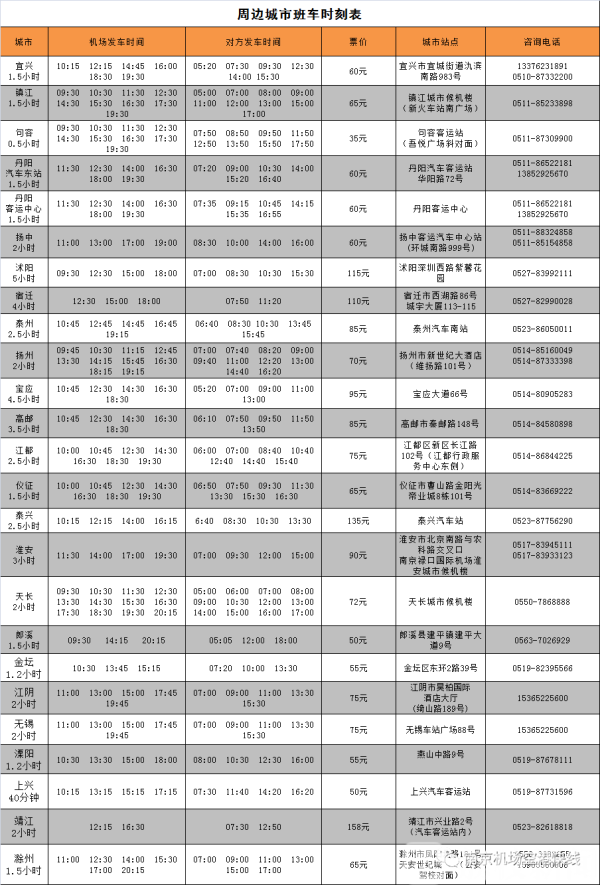 南京禄口国际机场城际班车4月17日起又新增七条班线复班啦!另沭阳、宿迁、泰兴、天长班线在原有基础上新增班次(具体时刻详见具体时刻信息表)。