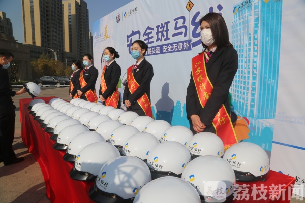 近年来,电动自行车保有量急剧增长,在给出行带来便利的同时,由于驾乘人员安全意识不强,存在一定的交通安全隐患。有研究表明,在不戴头盔的情况下,一旦发生事故,骑行人头部受伤概率为64.8%,致死率也非常高。为了有效预防和减少涉摩涉电伤亡交通事故发生,南通交警九大队携手南通农商银行、江苏银行,免费向市民赠送头盔。