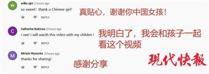 3 月 21 日,袁露的朋友将手绘漫画视频放到了国外网站上。" 真贴心,谢谢你中国女孩 "" 我明白了,我会和孩子一起看这个视频 "…… 令袁露感动的是,手绘漫画视频吸引了很多国外网友的关注,大家纷纷在评论区感谢袁露对防护措施的分享。
