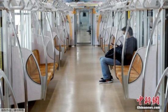 日本全国进入紧急状态后,平日里拥挤的东京地铁上乘客寥寥。