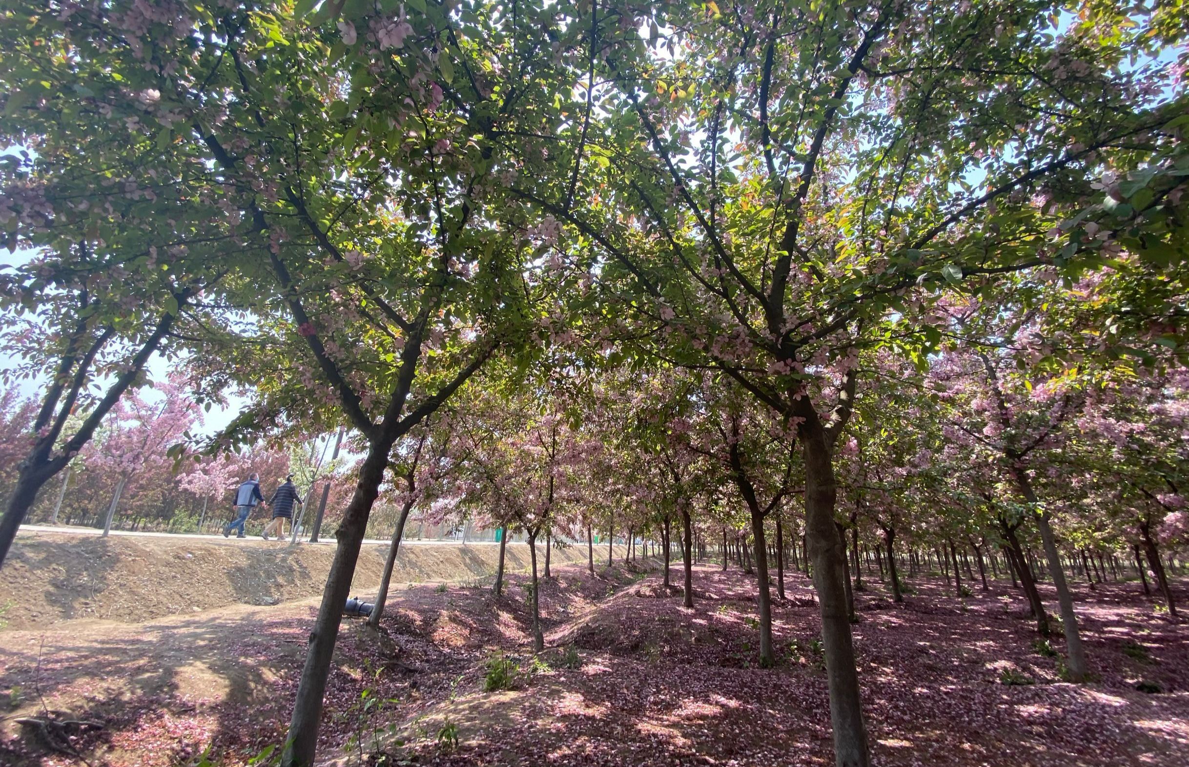 “春天是赏花赏景的最好季节,带父母到这里看看海棠,景色非常美,玩的很开心。”红妆翠袖一番新,人向园林作好春,走进位于刘集镇的金海棠农业园,只见红的、粉的、白的……千余亩海棠花竞相绽放,锦簇的花朵开满了枝头,密密匝匝,芳香四溢,“醉”了林间赏花人。花开逢盛会,伴着花香,沭阳海棠节已举办了五届,通过在天然、精品、原生态上作文章,在观赏、休闲、旅游上下功夫,如今已成为沭阳旅游发展新亮点,有力丰富了花乡乡村旅游的内涵,同时也带动了花木产业“美丽经济”。“我们海棠园有1800亩,除了垂丝海棠等传统品种,还有时光秀、路易莎等稀有品种,现在正值花期,每天观光的人络绎不绝,订单也接踵而来,无论品牌打造还是经济效益都很不错。”江苏金海棠农业科技有限公司总经理陈国庆说。