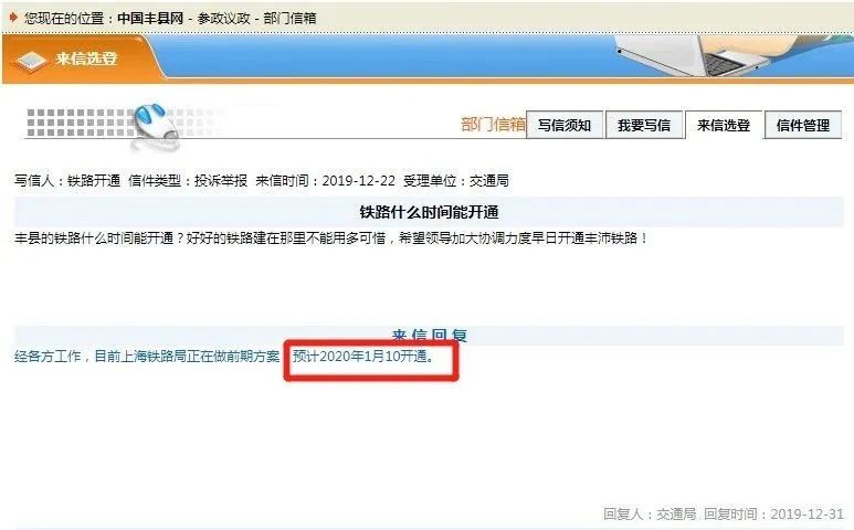 在2019年12月31日给的回复是:
