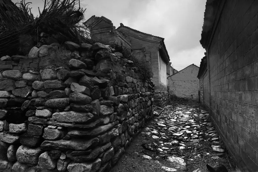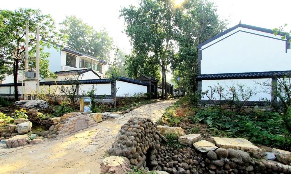 石墙、石院、石板路掩映在茂盛的树林间,与山水相衔接,浑然一体。
