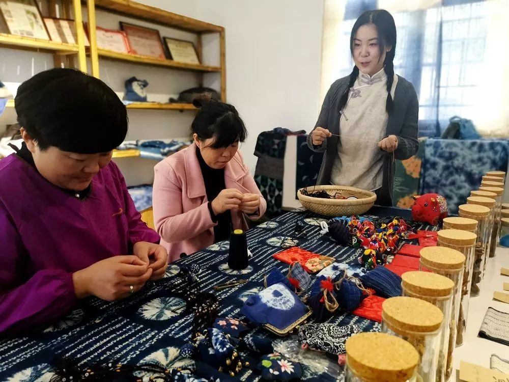 ▲江苏工程职业技术学院大学毕业生田惜羽,来倪园村创办雨生百谷文化传播有限公司,从事传统服装、手工艺品的加工、销售。