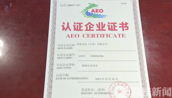 除了同扬光电,今年扬州市还有扬州佳明航电、扬州泰富特种材料有限公司、扬州泰富港务集团、扬州和益电动有限公司4家企业通过AEO高级认证。目前,扬州市共有12家企业通过高级认证,87家企业通过一般认证。