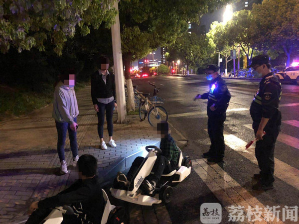 4月16日晚10时许,南京奥体警务站民警在辖区扬子江大道路口例行盘查过往车辆时,突然迎面驶来了两辆卡丁车,“司机”竟然还是两个六年级的小学生,民警立马将其靠边截停。