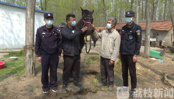 没想到,视频协查令发出后的第二天上午,扬州市高邮临泽的黎刚找了过来,称这马是他的,名叫“佳贝”,“这匹马是我花16000多块钱从山东买的,它叫国产半血马,身高163CM,年龄在6岁。”