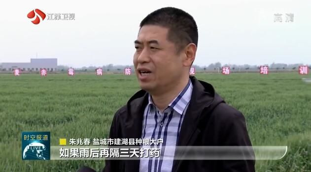盐城市建湖县种粮大户朱兆春说:“如果雨后再隔三天打药,可能对赤霉病的防控效果就没这么好。”