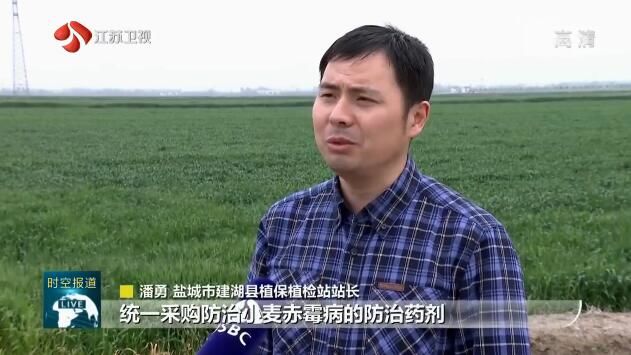 盐城市建湖县植保植检站站长潘勇说:“统一采购防治小麦赤霉病的防治药剂,免费发放给全县所有的小麦种植户,确保一遍用药全覆盖。”
