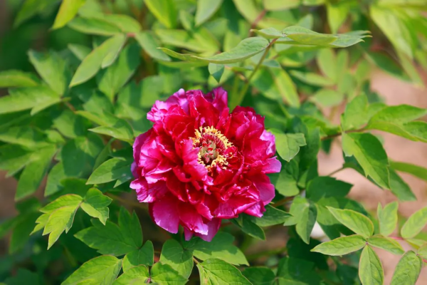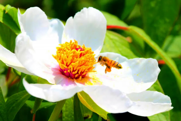 牡丹花寓意吉祥富贵、繁荣昌盛。绿油油的叶丛中,牡丹花朵格外显眼,融融春意温暖了乡村,也令游客陶醉其中。