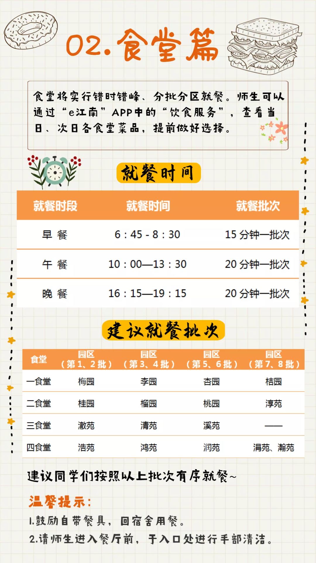 用餐上采用错时错峰的方式