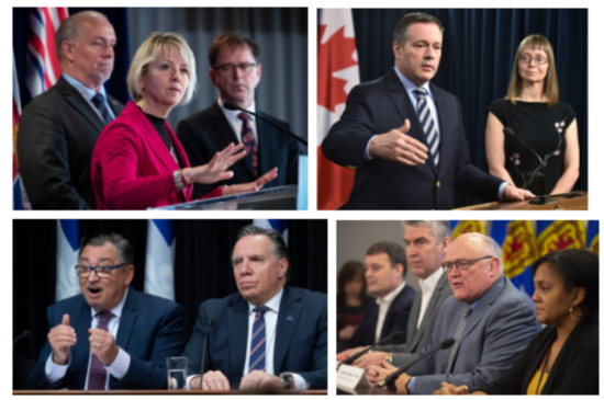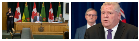 △上图分别为加拿大各省省长或卫生厅长与首席医疗官在一起举行疫情新闻发布会 顺序分别为:不列颠-哥伦比亚省、艾伯塔省、魁北克省、新斯科舍省、萨斯喀彻温省、安大略省、纽芬兰和拉布拉多省