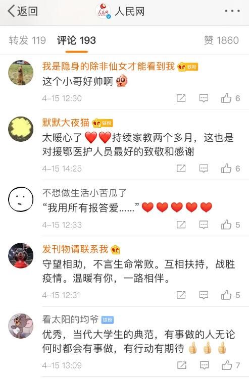 人民网、人民日报海外版、央视新闻等网络和新媒体平台也专题报道了唐张超的温暖故事,“为新时代大学生点赞”“正能量少年”“当代大学生的正确打开方式”“温暖和善意的传递,让人间美好如春”,广大网友纷纷为唐张超点赞!