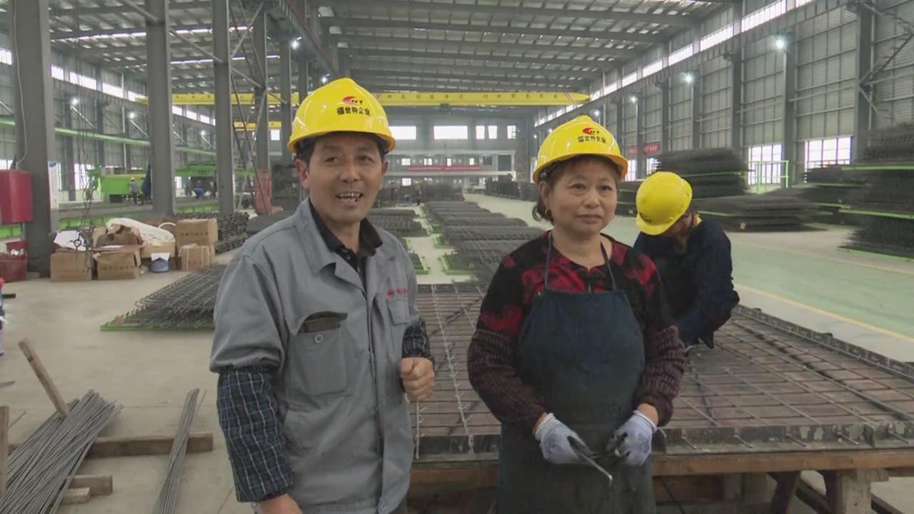 在镇上的一家钢材企业,在这里工作的退捕渔民陆桂清高兴地向我们介绍起他的工作岗位和工作内容。今年五十五岁的陆桂清身为一名党员是村里最早一批响应国家号召退捕上岸的渔民,走上新工作岗位的他已经熟练地掌握了钢筋轧压机床,成为了厂里的技术能手,同时他还将妻子和其他四名退捕渔民一起介绍到厂里,大家一起在这里挥洒汗水,开始新生活。