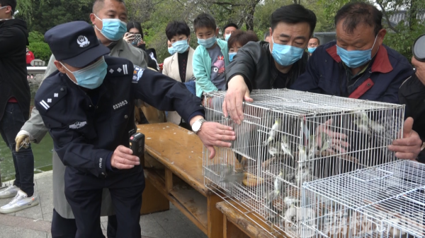 4月19日,徐州警方联合徐州市野生动物保护中心,对近期查获的涉案野生鸟类和市民救助的野生鸟类进行放飞,让鸟儿回归自然。
