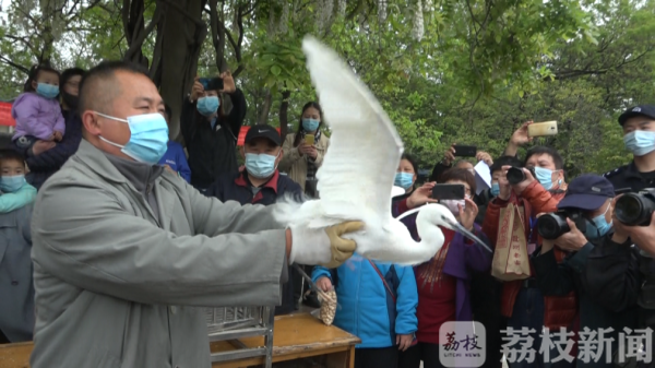 上午10点,民警和野生动物救助中心工作人员一起,在徐州市彭园天鹅湖畔对这些野生鸟类进行放飞,让这些本属于大自然的鸟儿回归自然。当前正值春暖花开,也正是很多野生动物繁殖的季节,希望大家都能够爱护鸟类。