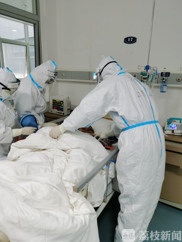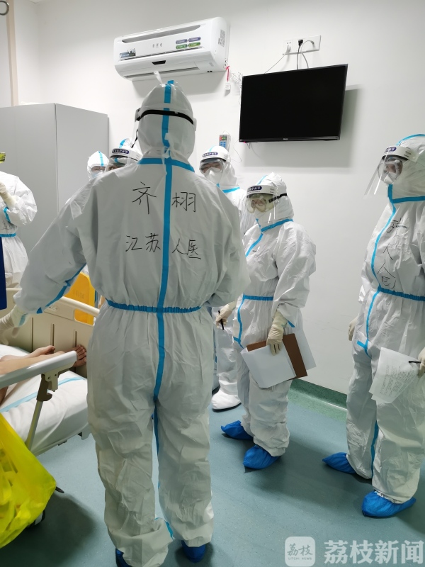 国家专家督导组成员,江苏省人民医院呼吸与危重症医学科主任医师齐栩说:“看面容她不认识我,但是隔离服上有‘江苏’两个字,她感到非常高兴,我当时跟她讲,我是在金银潭医院主管的医生,病人非常激动,眼泪往下淌。”