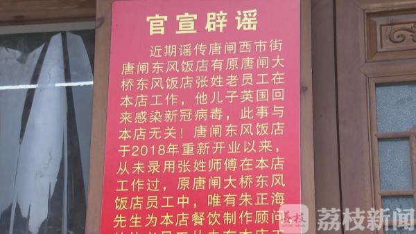 港闸区唐闸镇街道西洋桥社区党总支书记陈鹏飞说,4月15号左右,他们听到这个信息,跟东风饭店核实以后,也及时在居民群进行辟谣。