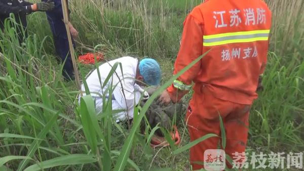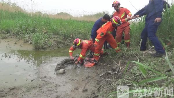 4月17日14时50分左右,扬州市江都区张纲九龙闸有一名老人被困泥潭。当地消防部门接到报警后,立即赶赴现场进行扑救。