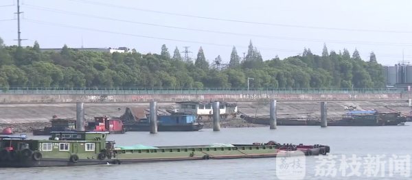 在江阴船闸下游引航道口,待闸船舶有序停靠在水上执法中队趸船东侧,等候办理过闸手续。在以往的繁忙时段,由于系船钩数量有限,不能满足船舶停泊系靠需求,一些船舶相互绑在一起,大大降低了停靠的安全度,此次新增的系船柱解决了这一难题。