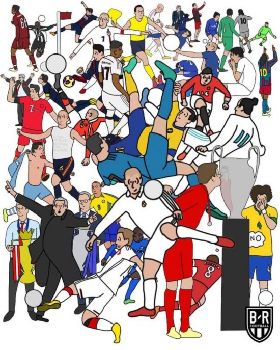 腾讯体育4月20日讯 BR在今天制作了一版特别海报,将本世纪以来的许多足球名场面都融入到了一张漫画图中,你能认出几个来呢?