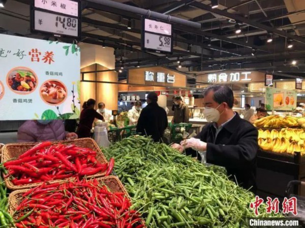 资料图:武汉市民在超市买菜 郭晓莹 摄