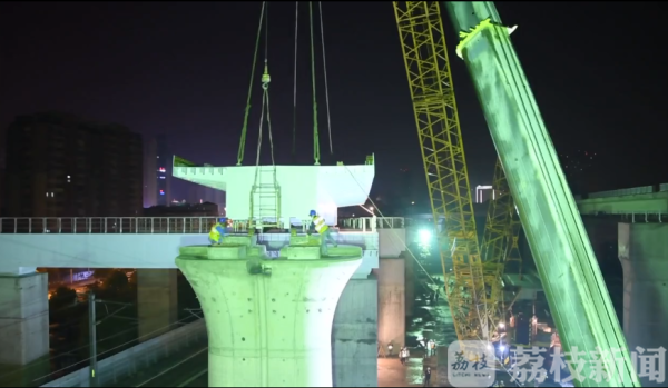 “我们采用钢箱梁吊装,可以减少这个吊装的重量,如果是相同体积的混凝土梁,重量可能要达到400多吨,这给我们吊装增加很大的难度。因为我们是临近既有繁忙干线沪宁城际施工,如果采用钢箱梁吊装,可以在两个小时之内,完成吊装作业,如果是混凝土梁的话,它这个吊装作业是没办法施工的。”吴凡说。