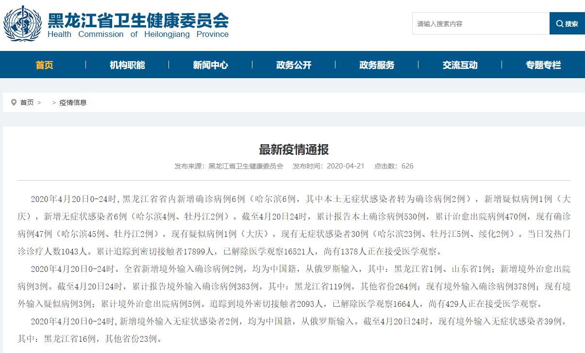 黑龙江卫健委官网截图