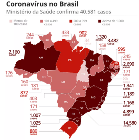 截至当地时间4月20日14时,巴西全国共确诊新冠肺炎病例40581例,比19日新增1927例,在过去24小时内新增死亡病例113例,全国累计死亡病例2575例。
