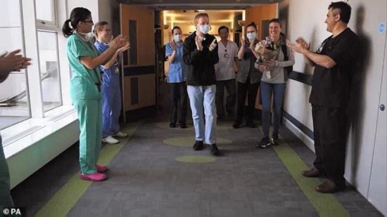 但第二天,他奇迹般地康复了。4月19日,入住重症监护室的第11天,他自己走出了病房。医护人员在走廊列队为他鼓掌。
