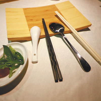 在邯郸武安市一家中餐馆,记者发现公筷公勺在颜色、材质上都有明显区别,如公筷为塑料制品,私筷为较短的木质材料;公勺是不锈钢的,私勺为较小的瓷制品。