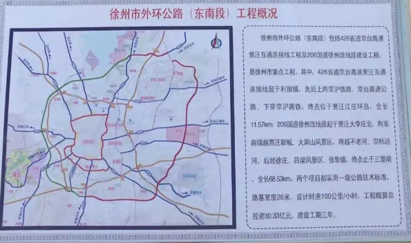 206国道徐州改线段建设工程为徐州市外环公路的东南环部分,是徐州市城建重点工程,也是江苏省首批公路水运品质工程之一。