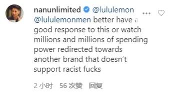 “Lululemon最好对此有个好的回应,要么就看着数百万消费者转买其他不支持种族主义混蛋行为的品牌。”