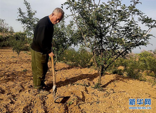 4月19日,河南三门峡市渑池县南村乡西山底村贫困户张希在自家的花椒地里劳作。 新华社发