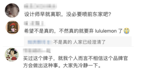 对此,有网友在@Lululemon微博声明下留言说,设计师早就离职,没必要喷前东家。↓