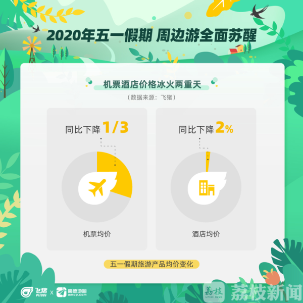 国内疫情得到有效控制后的首个5天小长假,全国人民出游热情高昂,行动谨慎。今天(4月22日),两家公司联合发布了五一出行预测数据,近三周以来,五一旅游搜索持续以超90%的周增长率攀升。周边游将在五一全面苏醒,带动城市周边度假酒店价格恢复至旺季正常水平。因不鼓励跨省旅游,五一机票均价比去年跌了近三成,往年的热门旅游航线甚至低至1折。