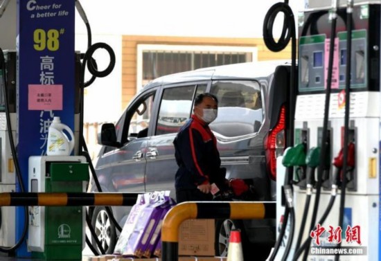 山西太原,加油站工作人员正在给车辆加油。张云 摄