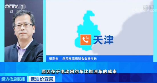 乘用车信息联合会秘书长 崔东树:在去年网约车改成电动汽车的趋势特别明显,原因就是电动网约车比燃油车的成本每月能省1700元左右,而在今年,由于油费的下降,油改电的意愿不会特别强烈,所以对新能源汽车发展还是带来一定的影响。