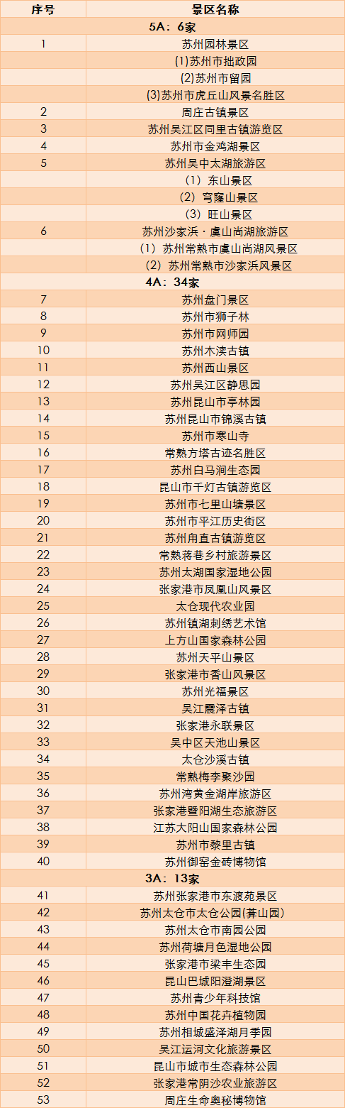 苏州全市53家A级景区