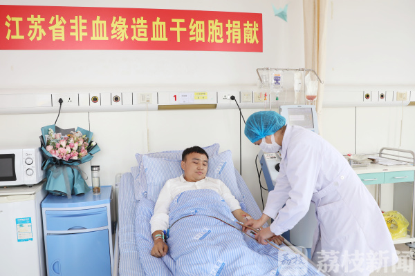 4月22日下午1点多,在江苏南京的东南大学附属中大医院2号楼8楼的血液科造血干细胞采集室内,来自江苏省盐城市盐都区的造血干细胞捐献志愿者薛银铸悬着的心终于落了下来。经过多次主动争取,37岁的薛银铸终于实现了自己捐献造血干细胞救人的愿望,看着自己捐献顺利采集的造血干细胞混悬液,即将被送往河南郑州挽救一名32岁的白血病患者生命,薛银铸高兴地说:“疫情也挡不住我捐‘髓’救人的决心,今天我终于从志愿者转正为捐献者啦!”