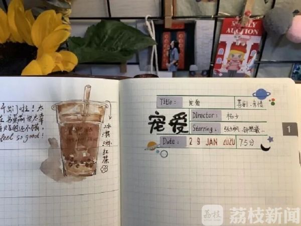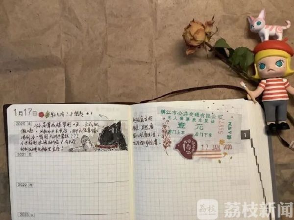 手账从2020年1月1日开始绘制,每天一页,105天里完整地记录了一个艺术生从期盼放假,到突经疫情,再到开学复课的全过程。其中有对疫情的担忧、对祖国的信心,也有每日的学习规划、美食花卉等,展现了在全民战“疫”中,在祖国大家庭庇护下的一位学生的丰富日常。